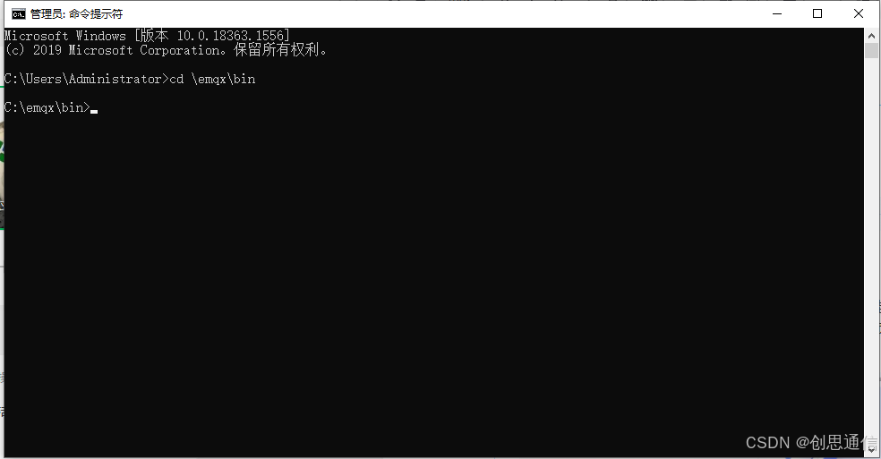 输入cd C:\emqx\bin(若解压路径不同,请替换为实际路径),按回车进入bin文件夹。