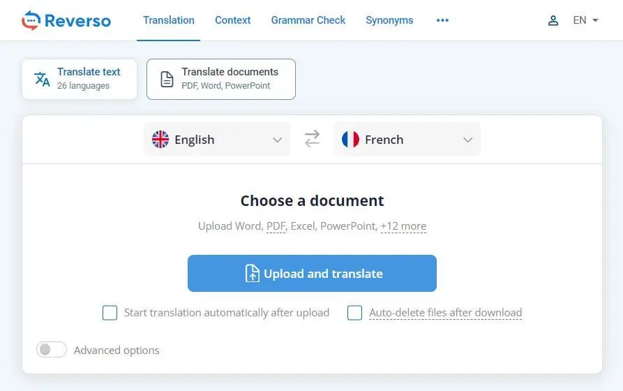 ①登录Reverso官网或打开APP,选“文档翻译”;