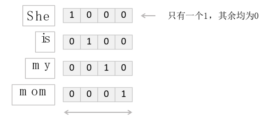 早期,计算机采用二进制编码,因此对单词和文字的分类变量编码方法采用One-hot Encoding(独热编码),简单来说,就是通过0-1二元编码方式,对每个单词/汉字加以区分,且每个编码只有1个1;