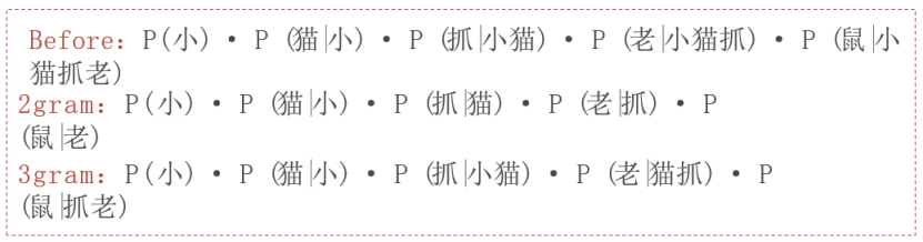 ·马尔可夫假设:像拼图时只看前几块的颜色,忽略更远的图案(例如2-gram只参考前一个词);