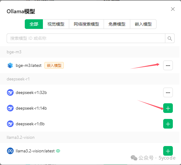 点击模型后面的加号(会自动查找到本地安装的模型)