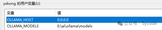 OLLAMA_HOST: 0.0.0.0` `OLLAMA_MODELS:E:\ai\ollama\models