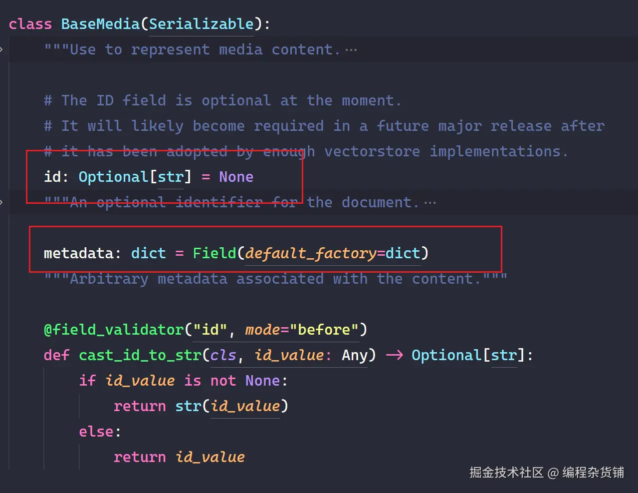 Document 对象继承自 BaseMedia, 包含了 id 和 metadata 属性: