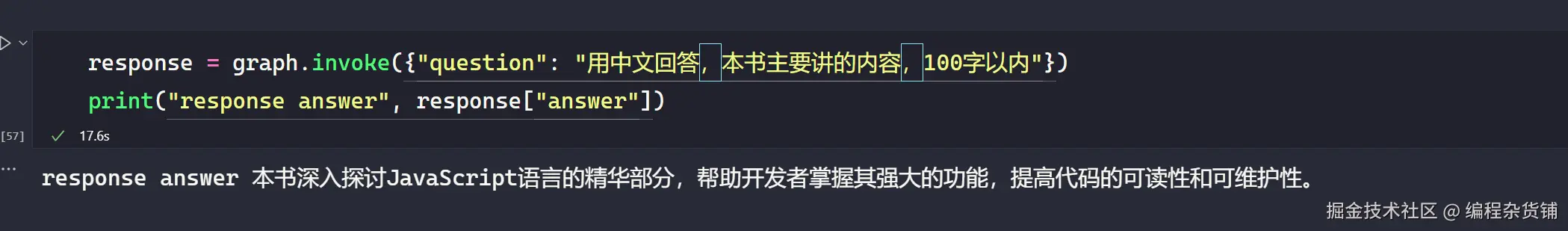 我们问题是: 用中文回答,本书主要讲的内容,100字以内, 我们看到回答也很简单,在 100 字之内,符合预期。