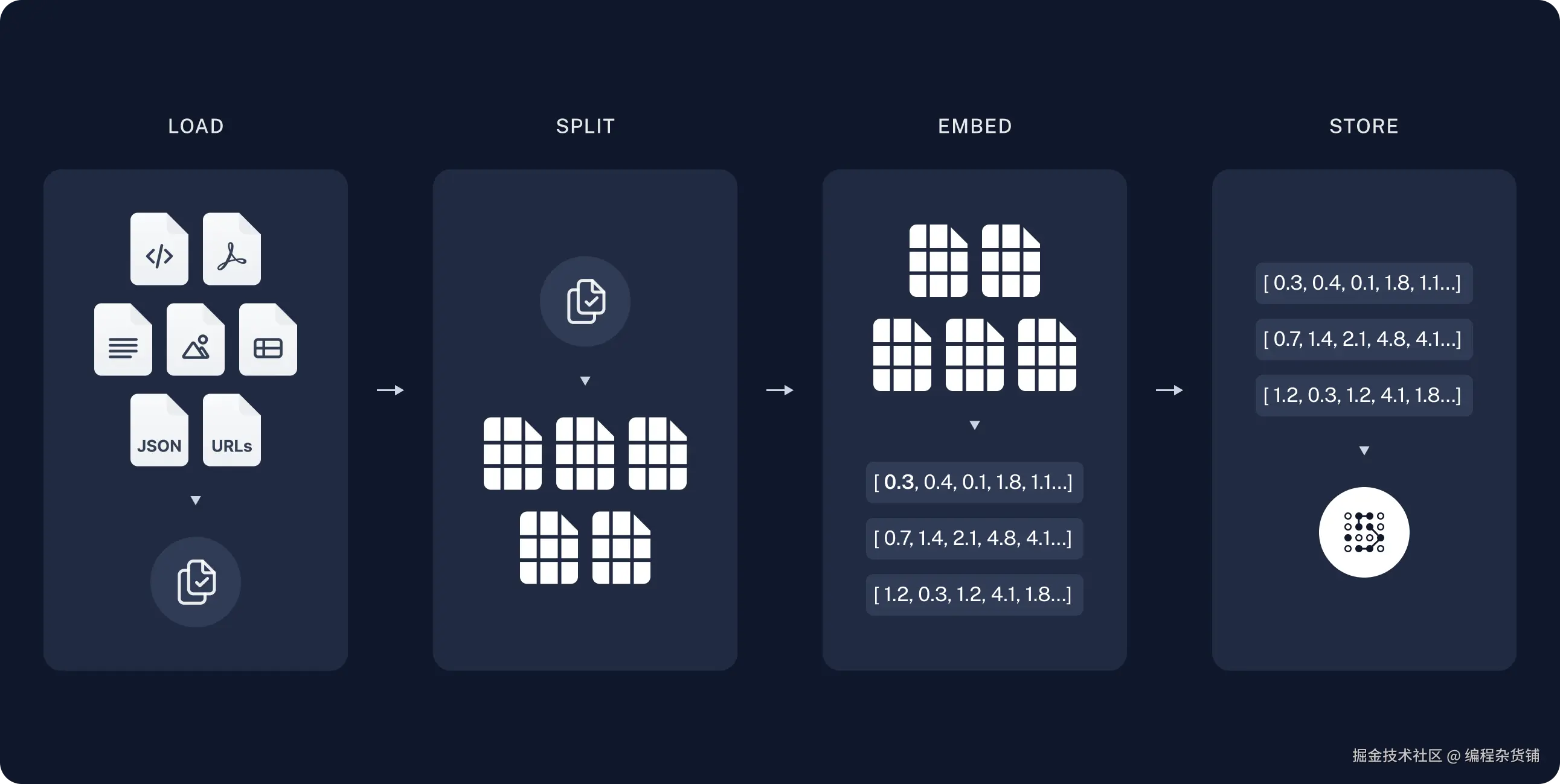 简单的说就是大模型,虽然比较全面,但是在一些细节上还是有很多的不同,这个时候我们就可以通过上下文的方式,给大模型一些额外的数据增强大模型的知识库,然后生成内容。RAG 从数据源到 LLM 输出,大致分为三个流程:
