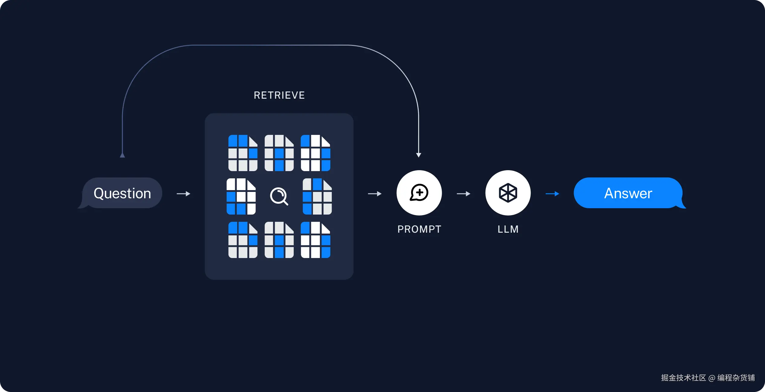 一个问题来,先经过向量的检索,然后生成新的提示词,然后给到大模型,最后得到答案。