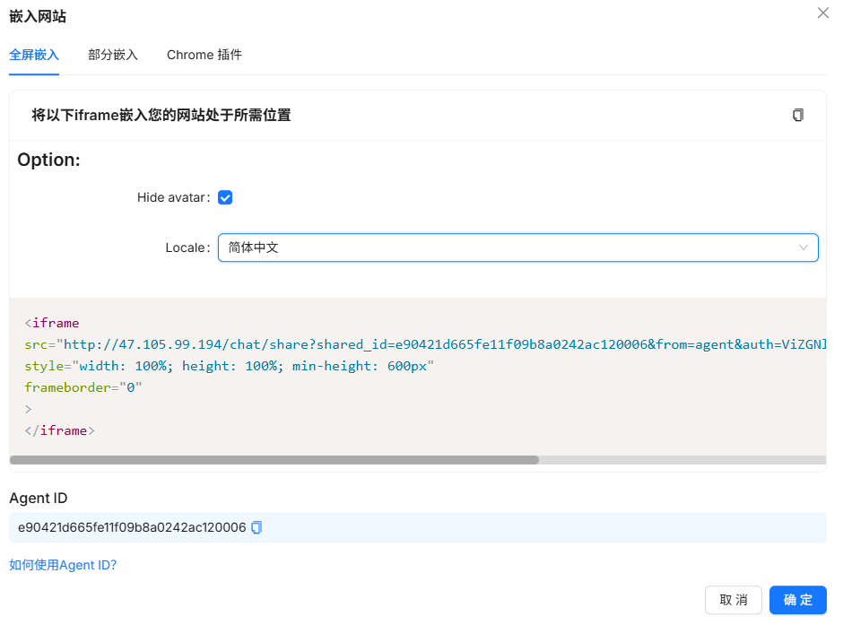 回到上面创建的Agent,点击“嵌入网站”