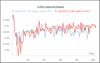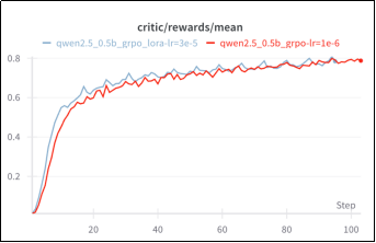 实际测试中,对于LoRA_rank=32的0.5B模型,采用RL-LoRA训练方法,训练收敛速度和最终性能与常规GRPO训练几乎相同,节省算力资源的同时,保证了训练的正确性和稳定性。