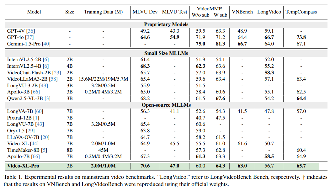 并且使用较少的训练数据,在多个基准评测上超越了之前Meta发布的7B模型Apollo-7B,以及同尺寸的知名开源模型Qwen2.5-VL-3B,InternVL2.5-4B等,项目代码,模型,训练数据均已开源!