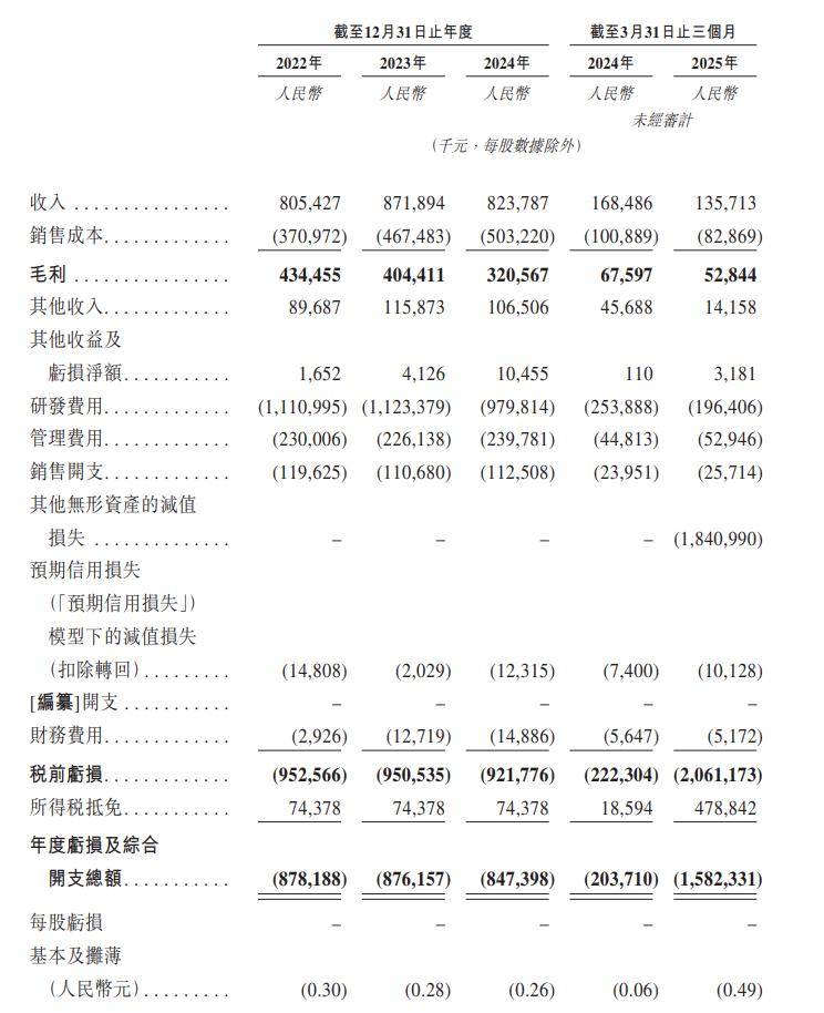 基本财务情况显示,斑马的营收比较稳定。2022年、2023年、2024年及2025年前3个月,公司营收分别为8.05亿元、8.72亿元、8.24亿元和1.36亿元,营收在最近两年有所下滑。
