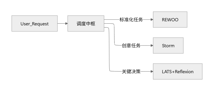 def self_discover(task):if task.complexity > 0.8and task.verification_needed: return [Reflexion, LATS] # 严格验证+多路径探索elif task.creativity > 0.7:return [Basic Reflection, Storm] # 创意增强else:return [REWOO] # 标准化流程