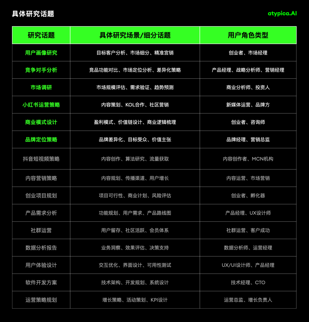 不同角色的人都在用 atypica.AI 做哪些研究?