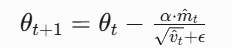 偏差修正:由于初始时刻 mt 和 vt 接近 0,需修正以提升稳定性: