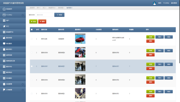 员工进入主页面,主要功能包括对系统首页、个人中心、服务预约、接单信息、维修保养记录、服务评价、服务网点等进行操作。员工主页面如图5-11所示: